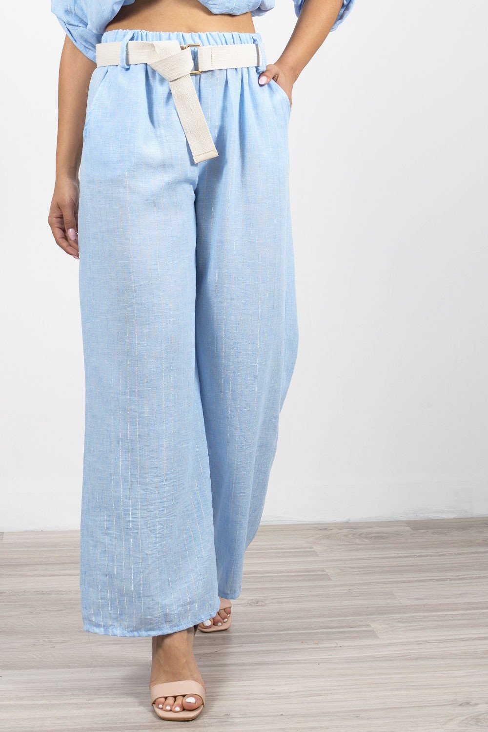 Παντελόνα Ριγέ με Ζώνη – Σιέλ