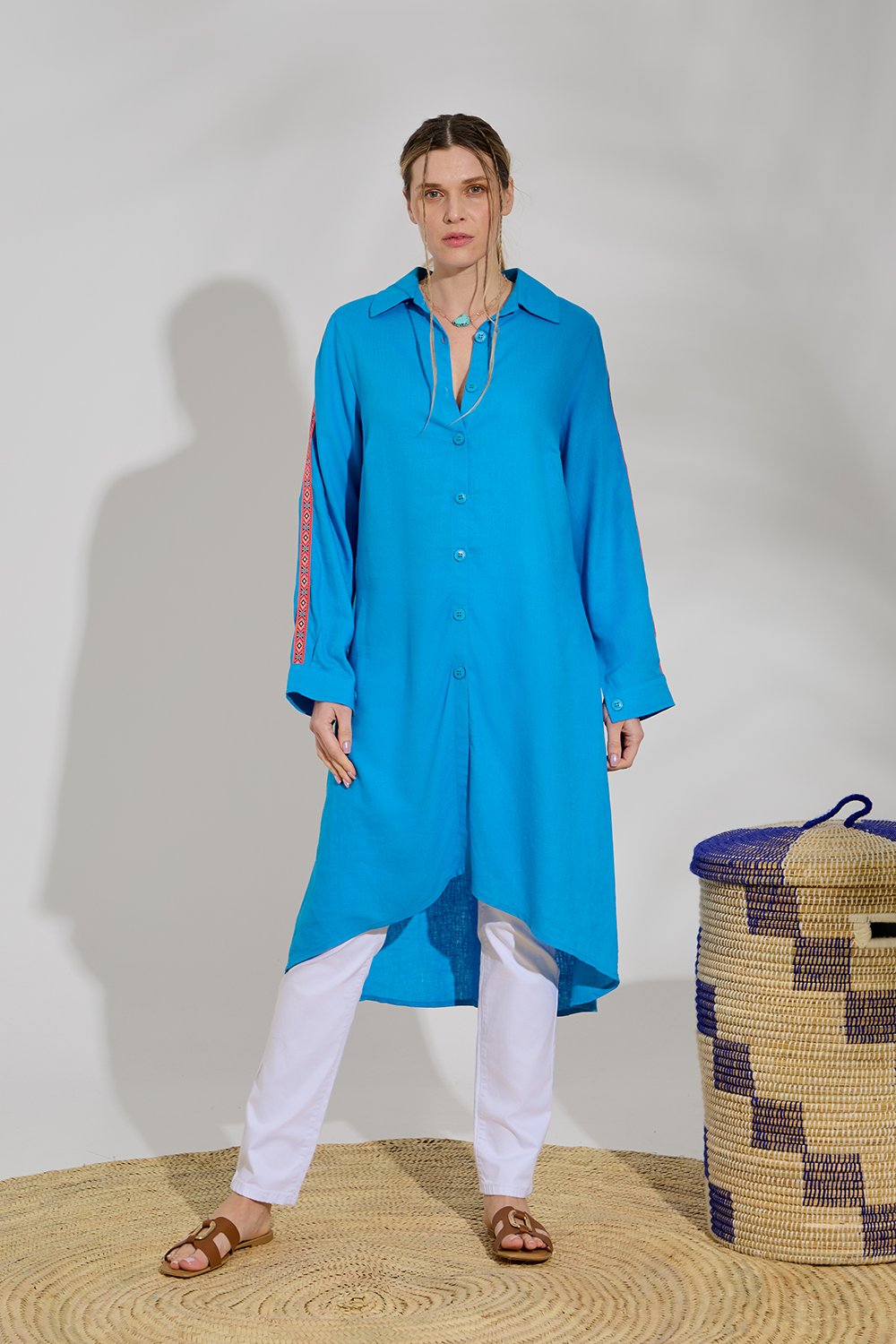 Πουκαμίσα μακρIά λινή με τρέσα κατά μήκος του μανικιού.